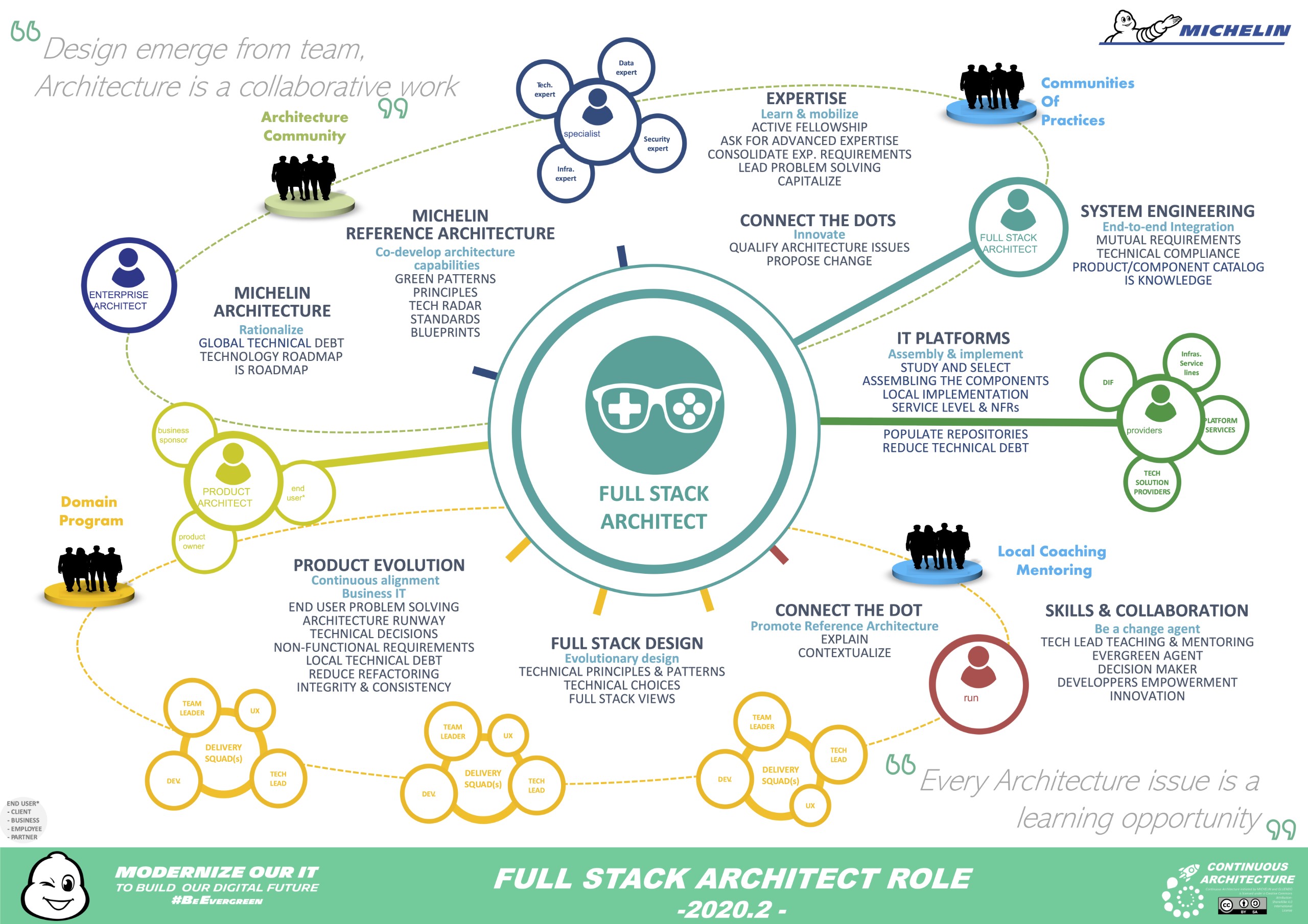 Alongside Yves Caseau we believe “that architecture in a lean & agile approach is not a discipline reserved for experts but a skill that all team members must possess, at varying levels” 1