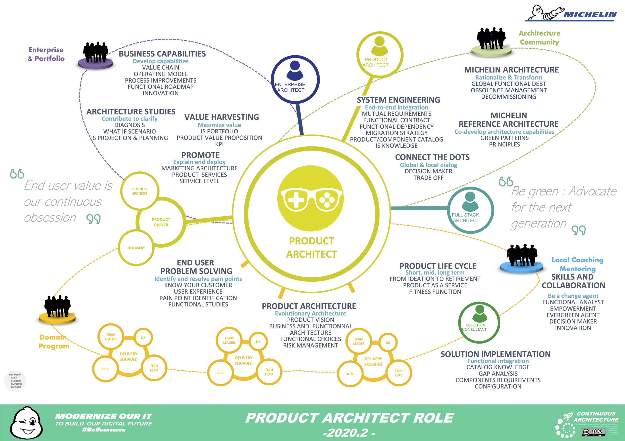 - designing products to meet end user expectations and fix their problems. The idea here was to focus on the value created by products and the usage from end users. It means a real proximity of the Product Architect with end users and the product owners
